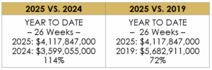 After 26 weeks, the domestic box office in 2025 stands at 114% compared to the same point in 2024 and 72% compared to 2019.
