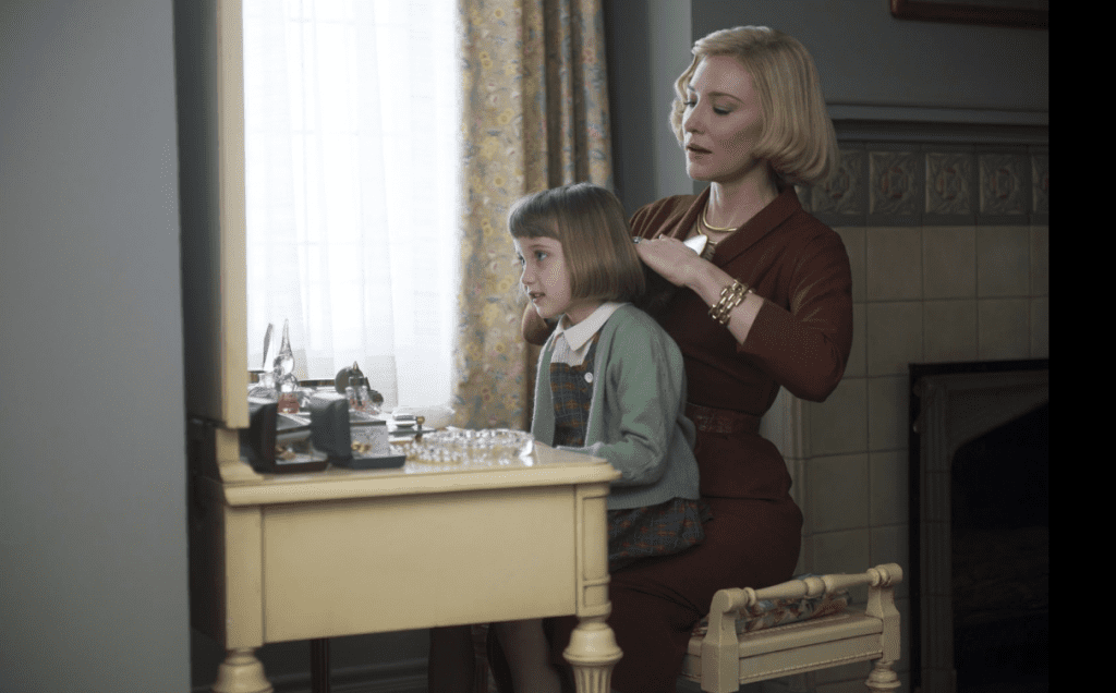 Cate Blanchett joined writer-director Terrence Malick for his narrative Knight of Cups (2015), with Christian Bale and Natalie Portman, and then as the narrator of his cosmic non-fiction piece, Voyage of Time (2016), and then back to narrative with Malick’s Song to Song (2017), with Michael Fassbender, Ryan Gosling, and Portman. Blanchett played in her first Disney movie as Cinderella’s Stepmother in Kenneth Branagh’s Cinderella (2015), with Lily James, followed by her second, acclaimed film with director Haynes, Carol (2015), with Rooney Mara; and the newspaper drama, Truth (2015), with Robert Redford and Elisabeth Moss.