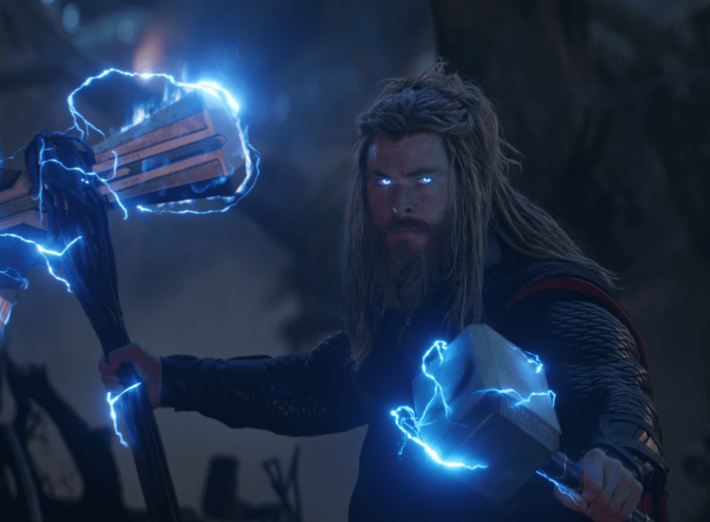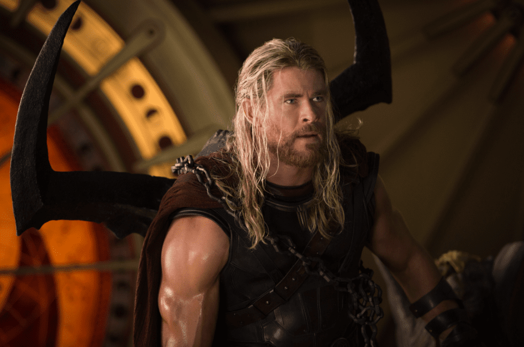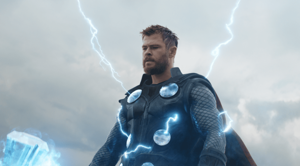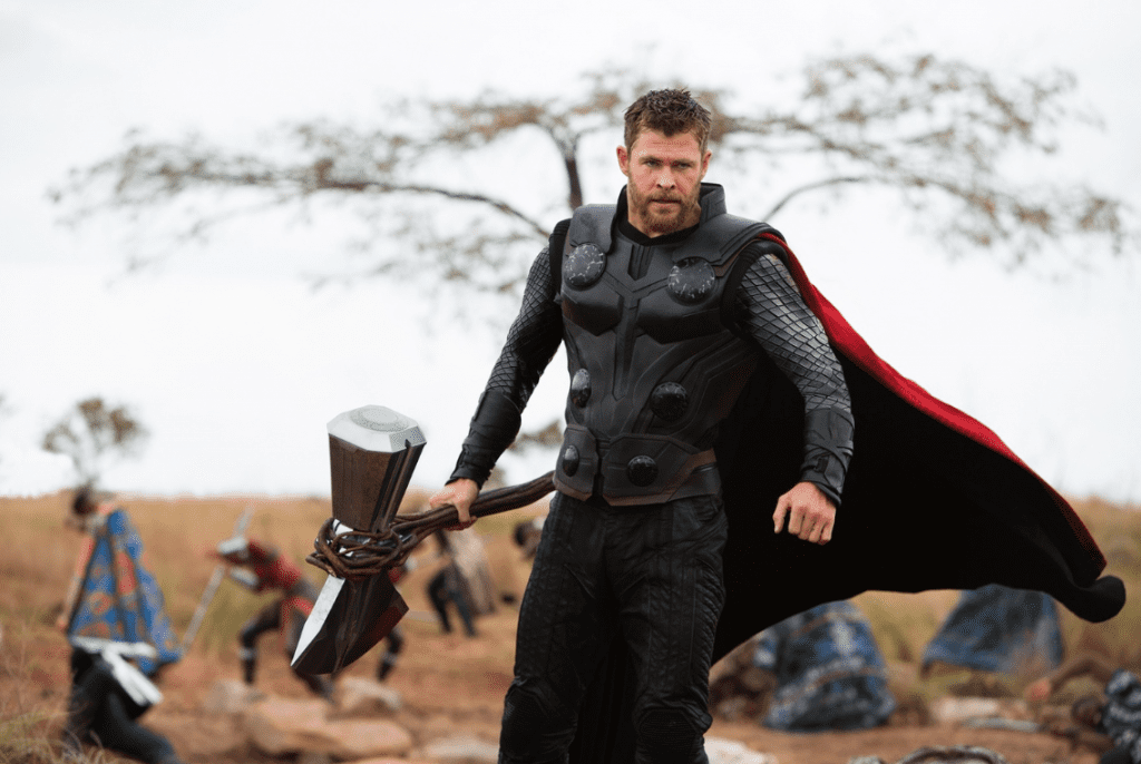 Hemsworth’s third movie in the lead was director Taika Waititi’s first studio movie, Thor: Ragnarok (2017), with new cast members Cate Blanchett and Jeff Goldblum. Hemsworth’s Thor muscled to the center of the biggest double-bill yet in the MCU: Co-directors Anthony and Joe Russo’s Avengers: Infinity War (2018) and Avengers: Endgame (2019), with new cast members Brie Larson, Karen Gillan, Jon Favreau, Bradley Cooper, Gwyneth Paltrow, and Josh Brolin.