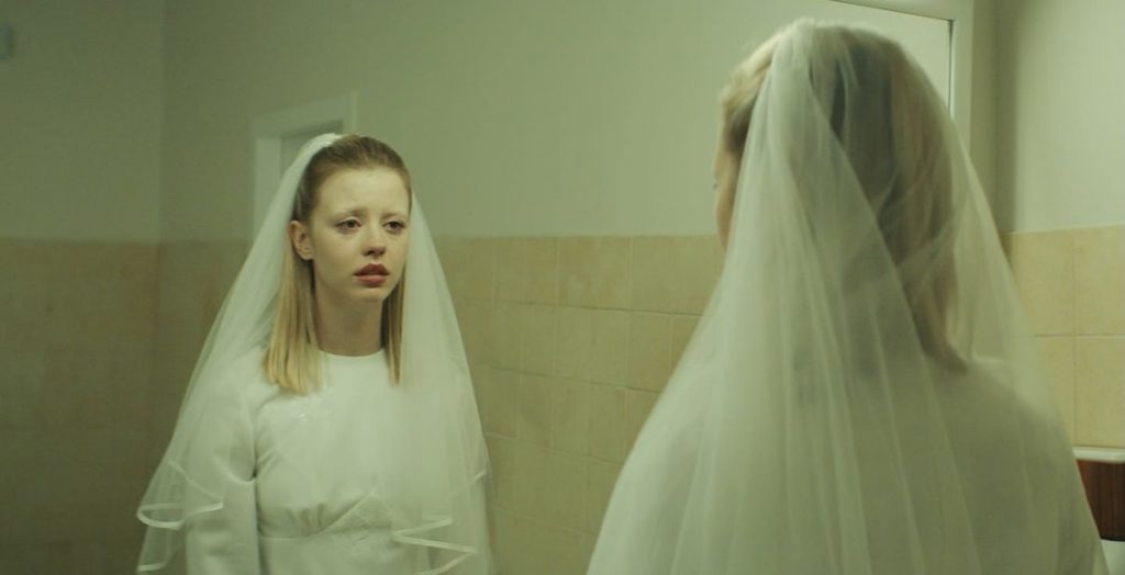 Mia Goth (birthname: Mia Gypsy Mello de Silva Goth) is an actor whose seemingly innocent-looking features belie a ferocity in many of the roles she’s tackled since her movie debut in “The Gun” segment in Lars von Trier’s two-part erotic epic, Nymphomaniac (2013), with the eclectic cast of Charlotte Gainsbourg, Stellan Skarsgård, Shia LaBeouf, Christian Slater, Jamie Bell, Uma Thurman, Willem Dafoe, Jean-Marc Barr, and Udo Kier, and which premiered (part one) in the Berlin film festival.