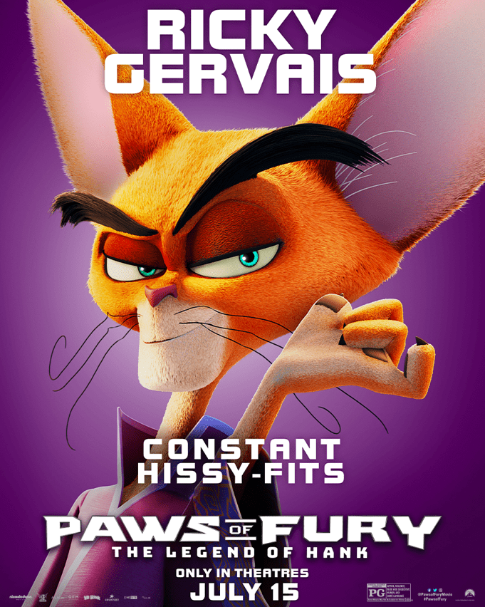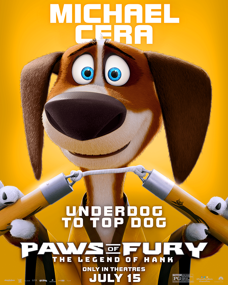 A hard-on-his-luck hound Hank (Michael Cera) finds himself in a town full of cats who need a hero to defend them from a ruthless villain's (Ricky Gervais) evil plot to wipe their village off the map. With help from a reluctant teacher (Samuel L. Jackson) to train him, our underdog must assume the role of town samurai and team up with the villagers to save the day. The only problem... cats hate dogs. Also starring Mel Brooks, George Takei, Aasif Mandvi, Gabriel Iglesias, Djimon Hounsou, Michelle Yeoh, Kylie Kuioka, and Cathy Shim, PAWS OF FURY: THE LEGEND OF HANK pounces into theatres July 15, 2022. Come along with me to a place that's anything but regular. It's a place where dogs can shapeshift, cats can wield swords, and imaginary friends can become real. A place where the right hero for the job just might be alien rocks, teenagers, or super powered kindergarteners made in a lab. It's a place where a kid can be a genius, a secret agent or even ten different aliens. A place where the menu conists of cookie cats, bacon pancakes, gargantuan jawbreakers, and even Froggy Apple Crumple Thumpkins. It's a place where the greatest adventures can take place at a park, a creek, a bodega, summer camp, or even in the middle of nowhere. A place where you can live inside a whale, solve mysteries, fight ice wizards and go to a school entirely inhabited by animals. It's a place where Death can be your best friend, a goldfish can be your brother, one man can be both your uncle AND grandpa, and bears can be your friendly neighbors who stack on top of each other. It's a place where you don't have to change in order to feel welcome. It's a place that will accept you as you are, whether you're a scam artist, a cow, a chicken, an apple, an onion, or even a dude who can't get a date to save his life. It's a place that only exists to make you laugh, feel happy, and forget all of your troubles full of fun, magic and music from Alligator to Zebra. It's a place we like to call... Paws of Fury: The Legend of Hank.