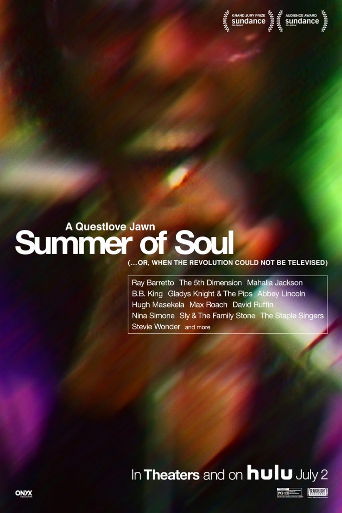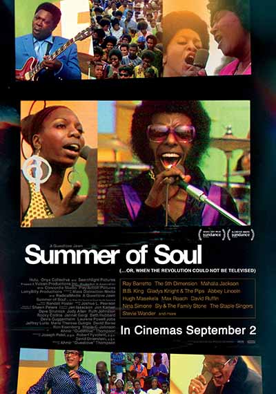 SUMMER OF SOUL is part music film, part historical record created around an epic event that celebrated Black history, culture, and fashion. Over the course of six weeks in the summer of 1969, just 100 miles south of Woodstock, The Harlem Cultural Festival was filmed in Mount Morris Park (now Marcus Garvey Park). The footage was never seen and largely forgotten--until now. SUMMER OF SOUL shines a light on the importance of history to our spiritual well-being and stands as a testament to the healing power of music during times of unrest, both past and present. The feature includes never-before-seen concert performances by Stevie Wonder, Nina Simone, Sly and the Family Stone, Gladys Knight and the Pips, Mahalia Jackson, B.B. King, The 5th Dimension, and more. — Searchlight Pictures