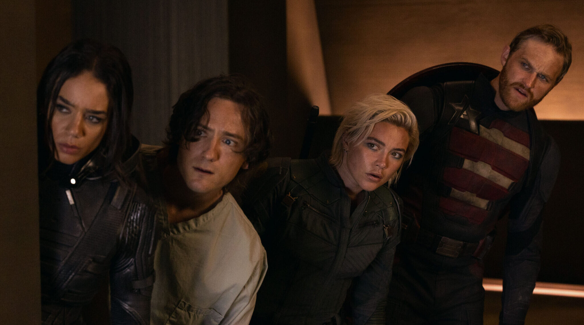 In Malaysia, Yelena Belova destroys a laboratory on behalf of CIA director Valentina Allegra de Fontaine to conceal her involvement with the O.X.E. Group's "Sentry" superhuman project. As de Fontaine faces imminent impeachment for her work with O.X.E. Group, she dispatches Yelena, John Walker, Ava Starr, and Taskmaster to a covert O.X.E. facility under the pretense of a mission. Once there, the operatives are pitted against one another in a deadly confrontation where Ava kills Taskmaster before they unexpectedly release a mysterious man named Bob from a suspended animation pod in the room. Upon learning that they were sent by de Fontaine to be incinerated along with any evidence of her misconduct, they manage to escape from the trap.De Fontaine learns that the group has survived, including Bob, who was presumed dead during the Sentry trials. When she arrives at the site, Bob creates a diversion by drawing enemy fire, allowing Yelena, Walker, and Ava to escape, only to sustain no injuries despite being shot. Bob then uncontrollably ascends into the air before passing out and crash-landing back at the compound, where he is captured and transported to the former Avengers Tower in New York City, now renamed the "Watchtower". De Fontaine intends to introduce Bob to the press as a super-powered protector akin to the Avengers, hoping the PR stunt will avert her impeachment. Meanwhile, Alexei Shostakov, who had overheard details of de Fontaine's plot while working as a freelance chauffeur, rescues Yelena, Walker, and Ava. Inspired by Yelena's childhood soccer team, Shostakov refers to the group as the "Thunderbolts".De Fontaine's agents pursue the Thunderbolts before they are ultimately apprehended by Bucky Barnes, who intends to have them testify in the impeachment proceedings. Upon learning that Bob was a subject of one of de Fontaine's top-secret experiments, Barnes joins the group to head to New York to infiltrate the Watchtower. The Thunderbolts discover that de Fontaine has convinced Bob to join her side as a new superhero she plans to market as a replacement for the Avengers called the Sentry. After easily overpowering the team and forcing them to retreat, Sentry develops a god-like delusion of superiority, turning on de Fontaine. However, her assistant, Mel, incapacitates him with a fail-safe kill switch. This triggers the emergence of the Void, Bob's destructive alter ego and the embodiment of his depression and insecurities created as a result of the procedure and his fractured psyche, who begins engulfing New York City in supernatural darkness, trapping its citizens in pocket dimensions based on their worst memories.Realizing the only way to stop the Void is from within, Yelena enters the darkness to reach Bob's consciousness. There, she faces her haunted past as a Black Widow and finds Bob hiding in a recreation of his childhood bedroom, where his father abused him. The other Thunderbolts soon join them, and together they travel back to the memory of Bob's initial experimentation in Malaysia, where he volunteered for the procedure, hoping to improve himself after becoming an aimless drug addict. The Thunderbolts confront the Void, but are swiftly overpowered. As the struggle threatens to fully consume Bob, the team intervenes, affirming their belief in him. Their solidarity empowers Bob to regain control, overcoming the Void as light and normality return to the city.With the threat neutralized, the Thunderbolts prepare to apprehend de Fontaine. However, she manipulates public perception by staging a press conference in which she re-brands them as the New Avengers. The Thunderbolts reluctantly agree, but Yelena threatens de Fontaine if she betrays them again.In a post-credits scene: the New Avengers and Bob discuss an ongoing problem in outer space, when they receive a distress signal from an inter-dimensional spacecraft with a large "4" emblem.