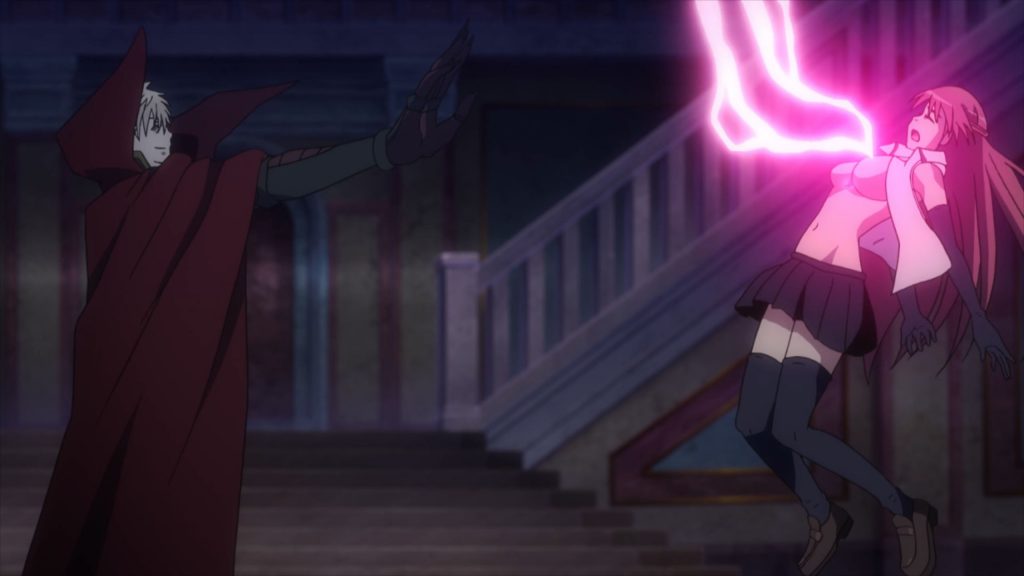 Kaunda Arata, who has the "Devil 's Factor" to collapse the world, was conducting an investigation of the ruins along with Asami Lilith, one of the Trinity Seven. The strong power that responded to Arata's power, the neighborhood was covered with dazzling light, and if noticed there was a place that is in the sky than the old, a place that governs the wisdom of the whole world: "The Sky Library." Suddenly, a man with a face similar to Arata appears with red lightning. The name is Red Kaoru "Abis Trinity." He is a demon king destroying the demon king because of the powerful power to eradicate the city in a blink, it has been sealed in the "sky library" for a long time. He reacted to Arata 's Demon Law Factor and unlocked the seal; he regained power as a demon king and was planning to return the world to nothing.