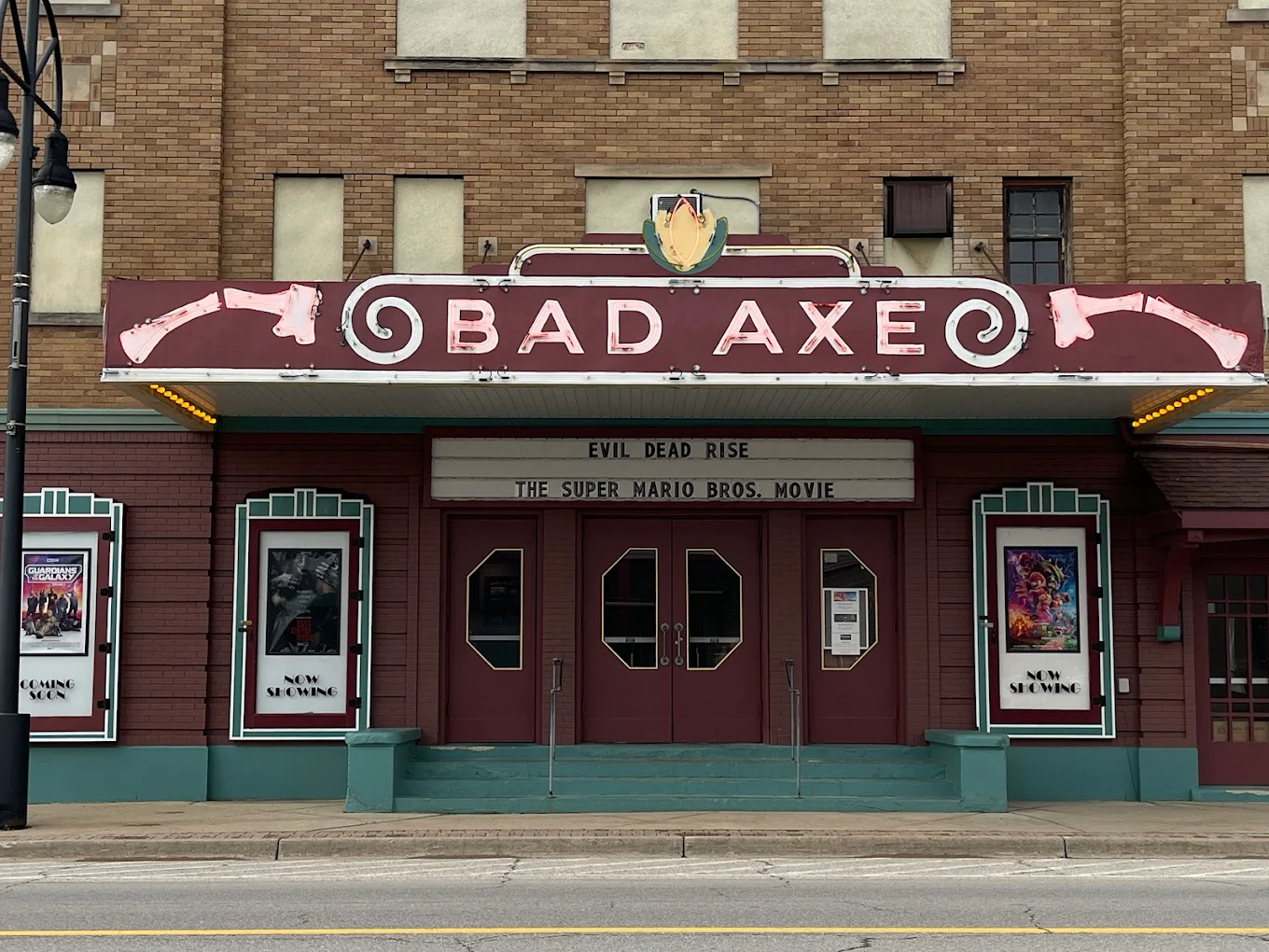 Located at 309 East Huron Avenue, Bad Axe, MI 48413, the Bad Axe Theatre is a historic, two-screen cinema that has been a local landmark since 1916. Housed in a charming Art Deco building, the theater features one large auditorium and a smaller screening room, offering both first-run and classic films in a nostalgic, family-friendly atmosphere. With affordable ticket prices, traditional concessions (including refillable popcorn), and a reputation for friendly service, it serves as both an entertainment venue and a community gathering space. The theater also supports local events and offers gift certificates, making it a cherished part of the Bad Axe community.