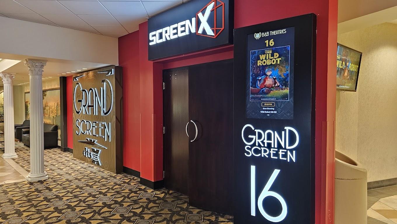 B&B Theatres Overland Park 16, located at 8601 West 135th Street in Overland Park, Kansas, offers a premier movie-going experience with 16 auditoriums featuring all-digital projection and audio. The theater boasts exclusive amenities such as the B&B Grand Screen, ScreenX, MX4D, screenPLAY!, and Lyric, providing immersive viewing options. Guests can enjoy heated reclining seats for enhanced comfort and a full-service Marquee Bar offering a selection of beverages. The theater hosts Game Nights every Tuesday, alternating between trivia and bingo with different themes each week. Additional amenities include RealD 3D presentations, free parking, online reservations, and accessibility options. B&B Theatres Overland Park 16 is one of dozens of movie theatres and entertainment destinations operated by the B&B Theatres chain. Enjoy the Magic of the Movies!