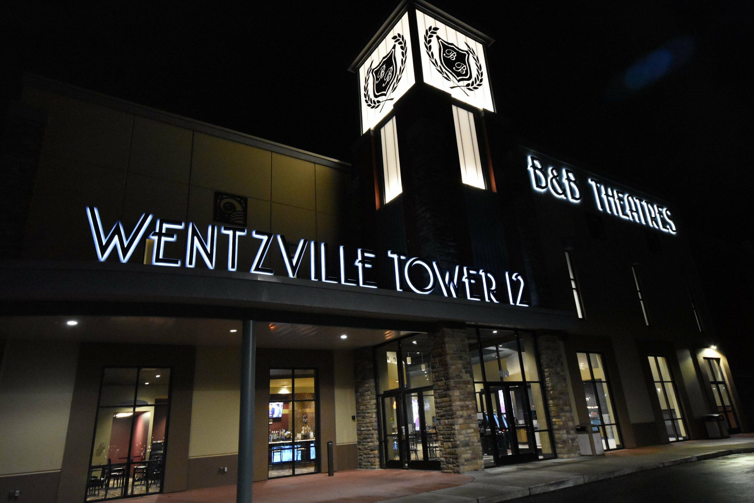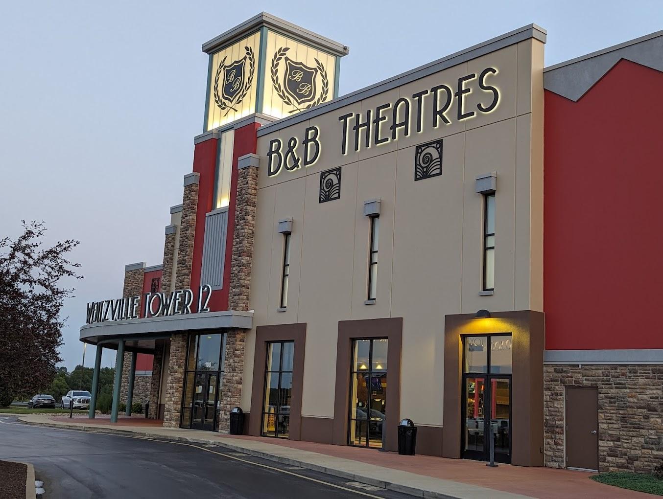 B&B Theatres Wentzville Tower 12, located at 100 Wentzville Bluffs Drive in Wentzville, Missouri, offers a premier movie-going experience with 12 auditoriums featuring all-digital projection and audio. The theater boasts the exclusive B&B Grand Screen, providing an immersive viewing experience. Guests can enjoy heated reclining seats for enhanced comfort, a full-service Marquee Bar offering a selection of beverages, and hot food is available from concessions. Additional amenities include ScreenX, RealD 3D projection, stadium seating, accessibility options, and free parking. The theater hosts Game Nights every Tuesday, alternating between trivia and bingo with different themes each week. The theatre is a popular venue for local residents and visitors, providing a convenient and enjoyable environment for watching the latest blockbusters and family-friendly films. B&B Theatres Wentzville Tower 12 is one of dozens of movie theatres and entertainment destinations operated by the B&B Theatres chain. Enjoy the Magic of the Movies!