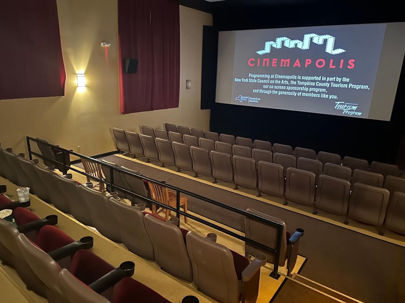 Cinemapolis is a member-supported art house cinema located in Ithaca, New York. It was founded in 1986 as a single-screen arthouse cinema in the basement of a shopping center and became a mission-driven non-profit media arts organization in 2000. Cinemapolis has five screens that feature stadium seating, gorgeous digital projection, and immersive surround sound.