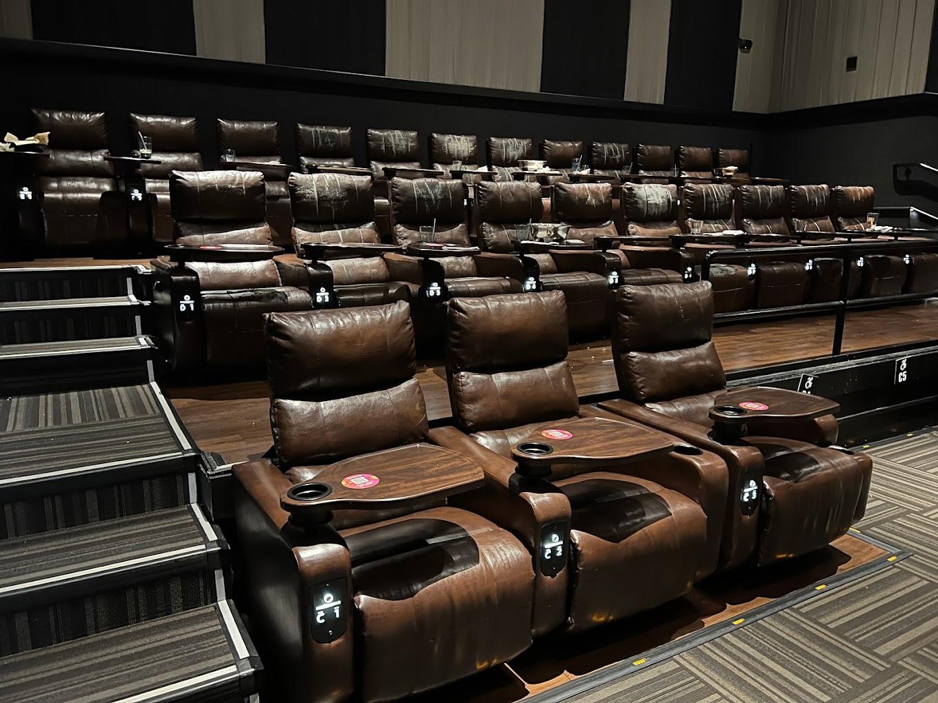 One of the standout aspects of this cinema is its dine-in service. Patrons can order food and drinks, which are delivered directly to their seats during the movie. The menu includes a variety of options, from gourmet appetizers and burgers to salads, pizzas, and desserts. They also offer a wide selection of beers, wines, and cocktails.