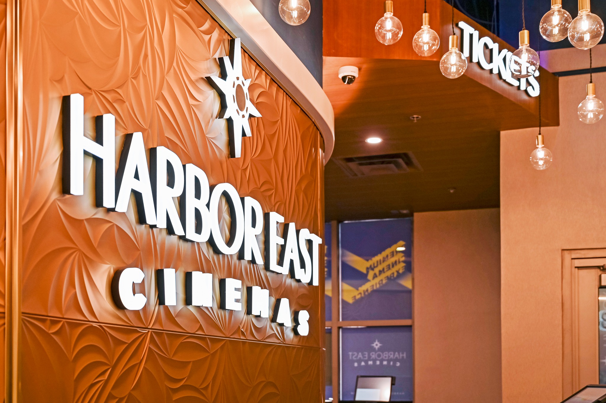 Harbor East Cinemas, located in Baltimore, MD, offers an upscale moviegoing experience with seven auditoriums. It features premium formats like Dolby Cinema and Barco digital systems, stadium seating, remote ticketing, and a full bar. The theater reopened in November 2022 with 607 recliner seats after Landmark Theatres moved out in March 2021.