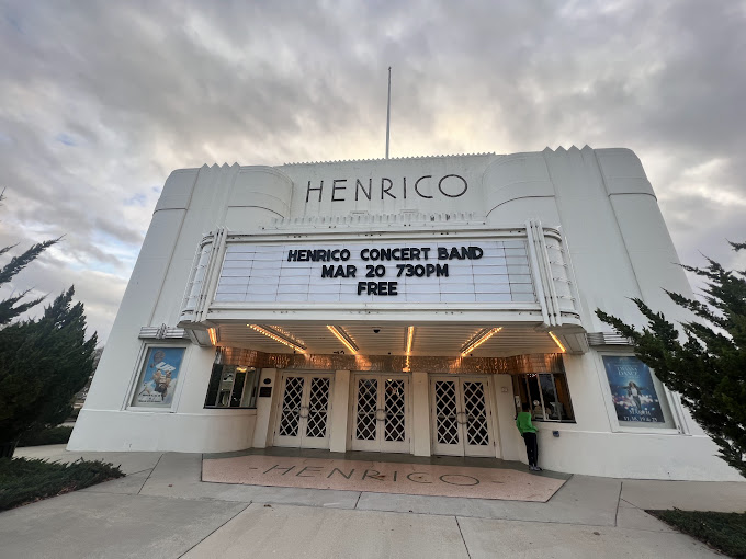 Henrico Theatre, located in Highland Springs, Virginia, is a historic theater building with a rich history. The theater was built in 1938 and was constructed in the Art Deco style using poured concrete (which was a new technology at the time) and brick. Today, the theater hosts a variety of arts programming and movies for all ages and is also available to rent. It is run by Henrico County Recreation & Parks.
