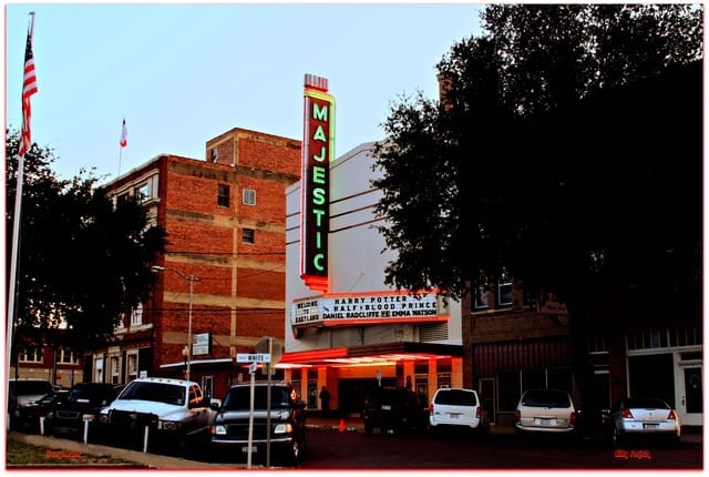 The Majestic Theatre is a historical movie house located at 108 North Lamar Street in Eastland, Texas. The theater plays first-run Hollywood movies every Friday, Saturday, Sunday and Monday nights with doors opening at 6:15 and the movie starting at 7:00. Our service is friendly and our prices are affordable. Come enjoy a lovely night at the movies.