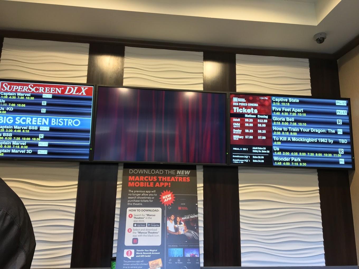 The Marcus Des Peres Cinema is a modern entertainment destination offering a premium moviegoing experience. Located in Des Peres, Missouri, this theater features state-of-the-art amenities, including comfortable reclining seats, digital sound systems, and crystal-clear projection for an immersive viewing experience. Guests can enjoy a varied selection of films, ranging from the latest blockbusters to special screenings. The cinema also offers a range of concessions, including classic movie snacks and gourmet options, as well as a Take Five Lounge for adult beverages. Perfect for families, date nights, or solo outings, Marcus Des Peres Cinema is dedicated to delivering top-tier entertainment and comfort.