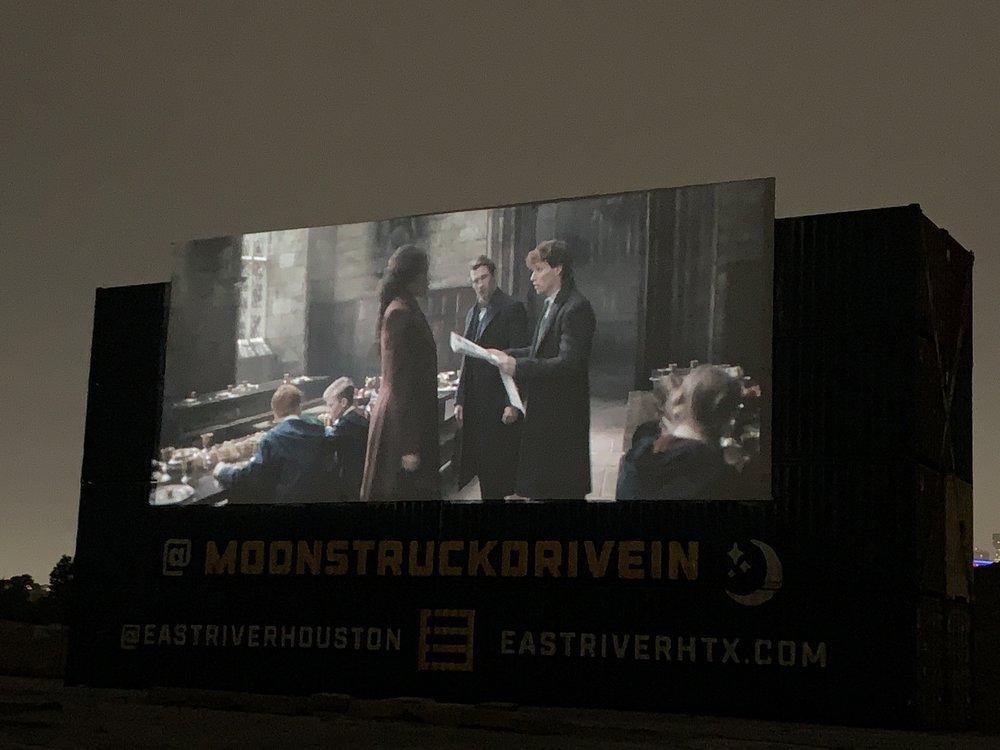 The Moonstruck Drive-In is a single-screen outdoor movie theater located in Houston, Texas. If offers a nostalgic drive-in experience with a modern twist. Situated near the East River development, it provides panoramic views of the downtown skyline while screening a mix of current films, classics, and special events. The venue features large digital screens, FM radio sound transmission, and a variety of food truck options, allowing guests to enjoy films from the comfort of their own vehicles. Moonstruck Drive-In has become a popular destination for families, date nights, and movie lovers seeking a unique cinematic experience.