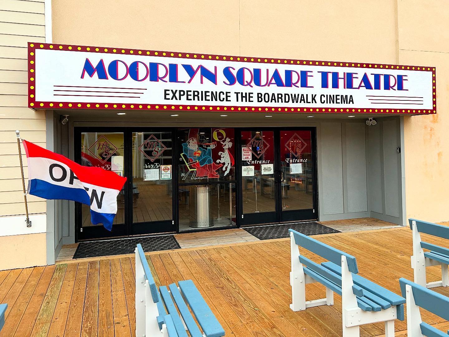 The Moorlyn Square Theatre is an historic 4-screen cinema located at 835 Moorlyn Terrace in Ocean City, New Jersey. It was built in 1905 as a bowling alley named Moore’s Bowling Casino and was converted into a 1,600-seat movie theater on June 19, 1922. The theater was operated by the Frank Theatres chain from 1989. It was taken over by the Ocean City Tabernacle and renamed Moorlyn Family Theatre until it was closed in February 2018. In November 2022, it was purchased by Town Square Entertainment and reopened in 2024.