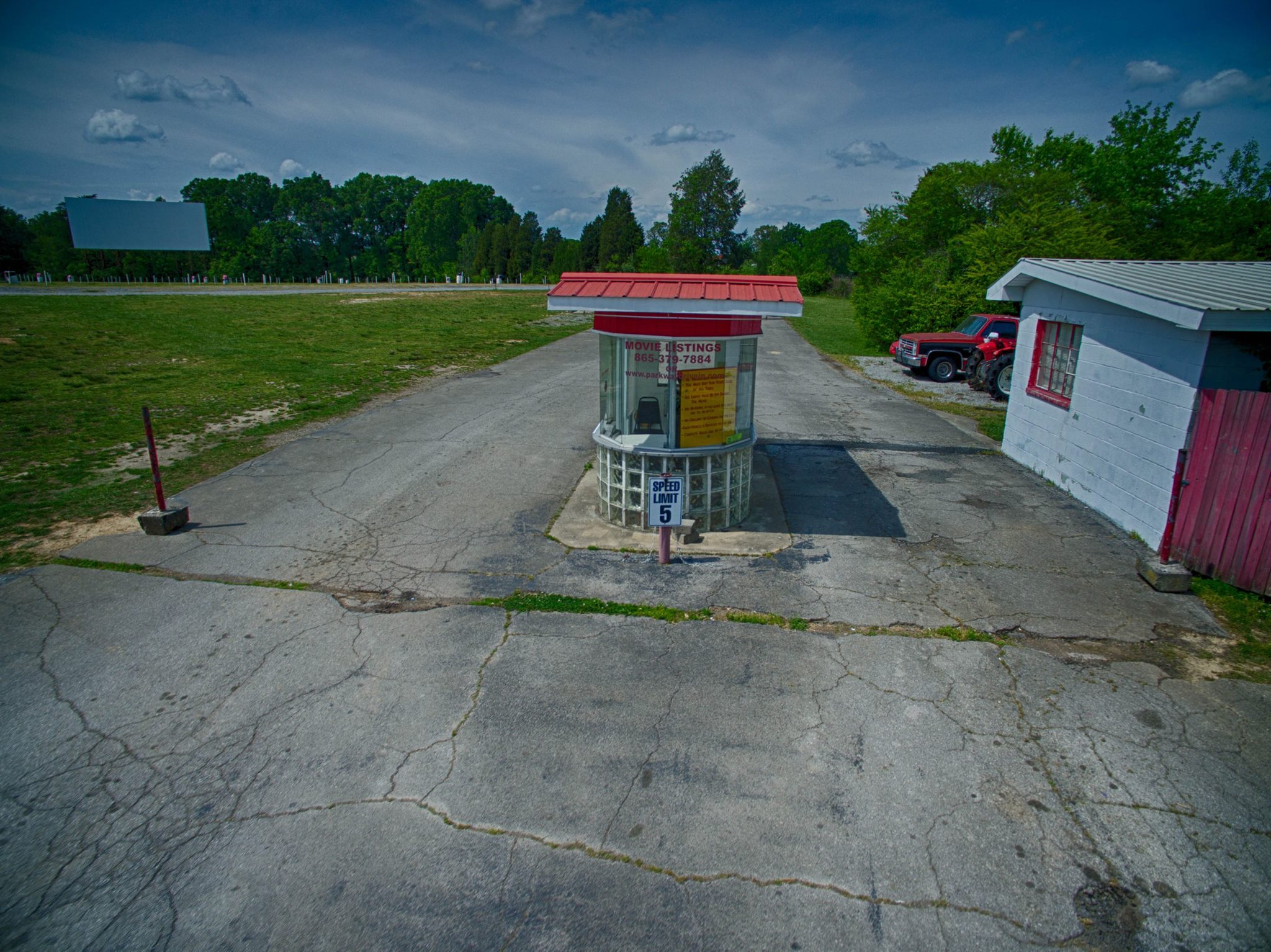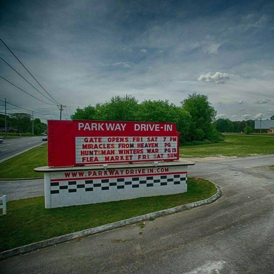 The Parkway Drive-In is a single-screen outdoor movie theater located in Maryville, Tennessee. It is located at 2909 E. Lamar Alexander Parkway, showing movies on Friday & Saturday nights during the warm weather months of the year. The gates open at 7:00 pm, and admission is cash only at the ticket booth. Prices are kept affordable at $8 for adults and $4 for children 12 and under. Kids under 4 get in for free! Customers can also enjoy a wide variety of items from the concession area, including popcorn, candy and food choices.
