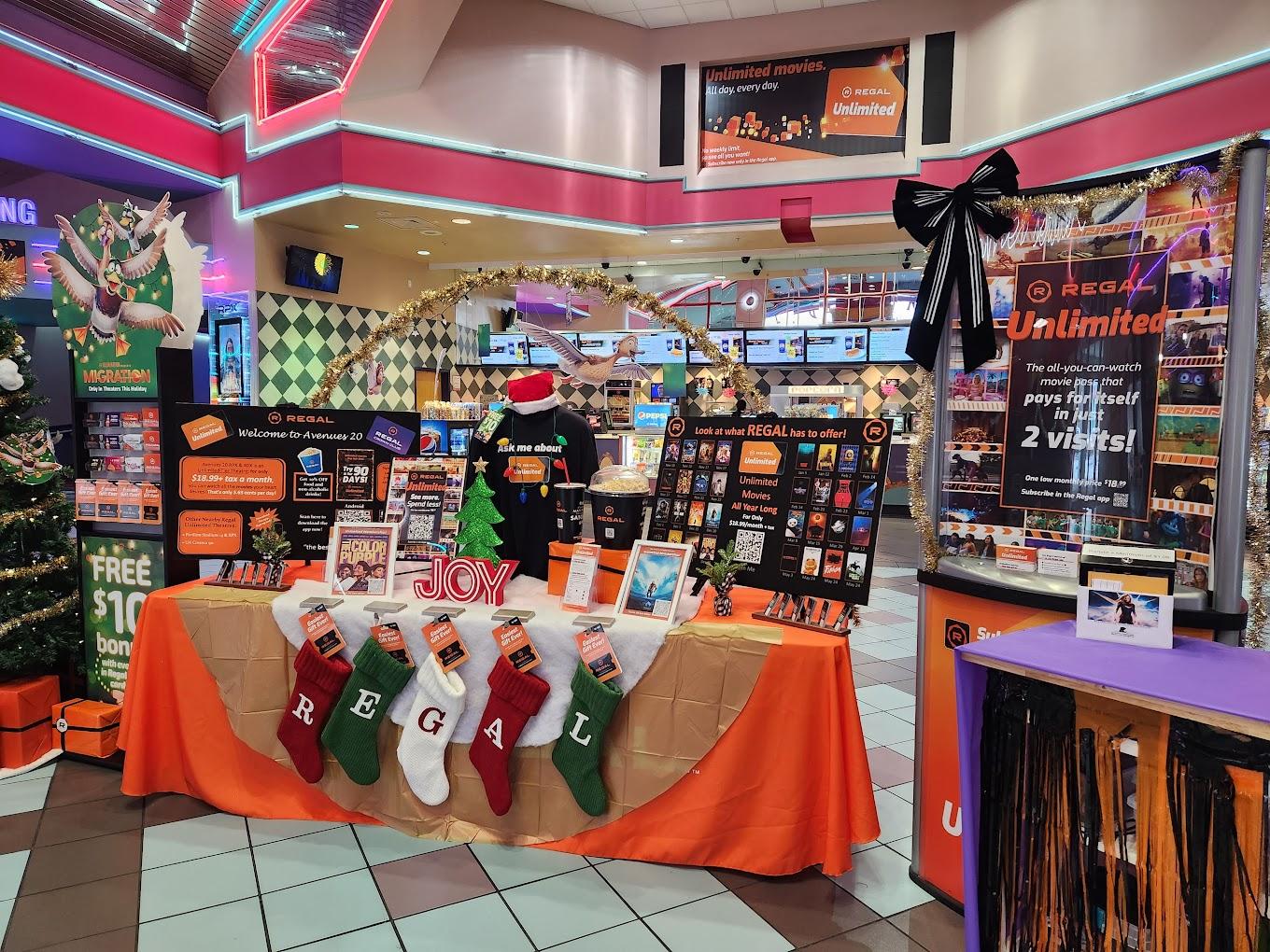 Regal Avenues in Jacksonville, FL, is a state-of-the-art movie theater that delivers an immersive entertainment experience. It boasts 20 screens, some of which have cutting-edge laser projection, 4DX for a multi-sensory experience, and RealD 3D for stunning visuals. With stadium-style seating, accessibility options, and a full bar offering beer, wine, and cocktails, it ensures comfort and a welcoming experience for all guests. Additional amenities include online ticketing, free parking, a party room, and an arcade for extra fun. Whether for a casual movie night or a special event, Regal Avenues offers a modern and dynamic setting for moviegoers of all ages.