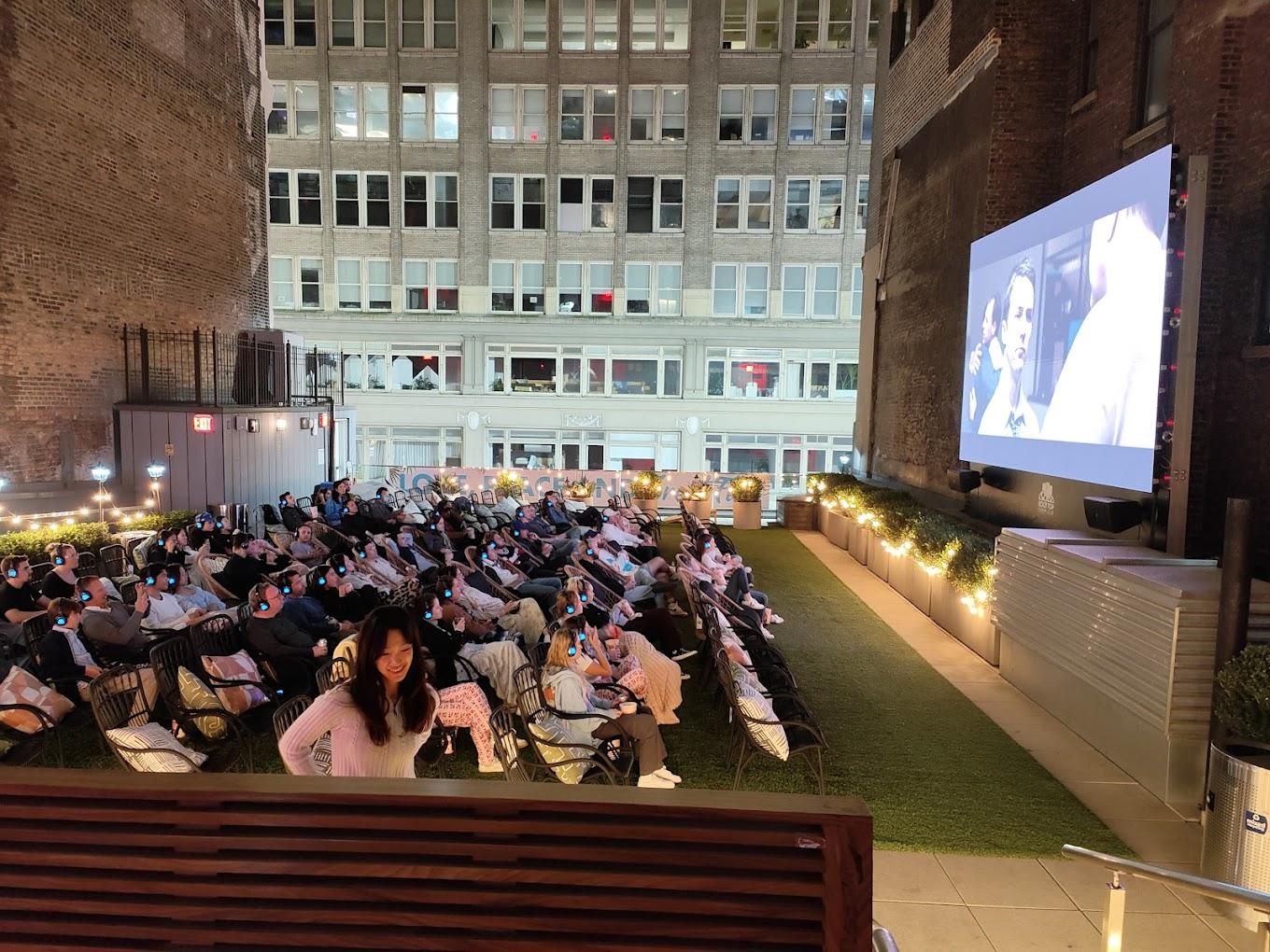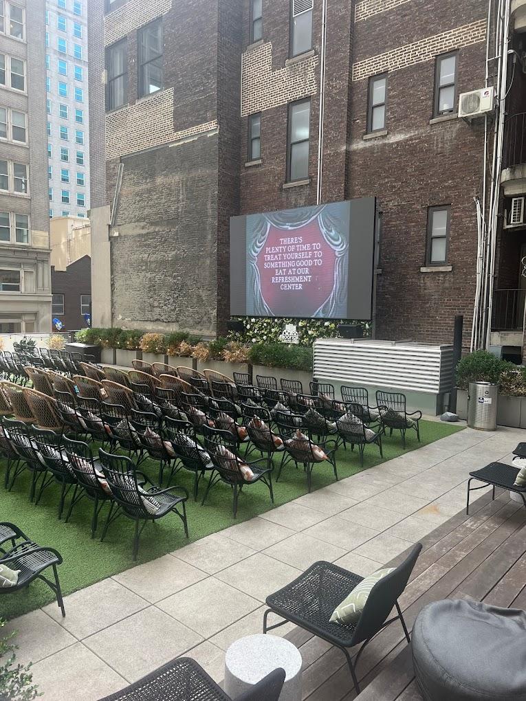 Rooftop Cinema Club Midtown in New York, New York, delivers a magical open-air movie experience with breathtaking views of the city skyline. Located in the heart of Manhattan, this rooftop venue blends cinematic nostalgia with modern luxury, offering a curated selection of cult classics, new releases, and fan-favorite films. Guests can enjoy comfortable deck chairs, wireless headphones for an immersive sound experience, and a vibrant atmosphere under the stars. With a menu featuring delicious food and drinks, Rooftop Cinema Club Midtown is perfect for date nights, gatherings with friends, or a unique evening out. It’s where the magic of film meets the energy of New York City.
