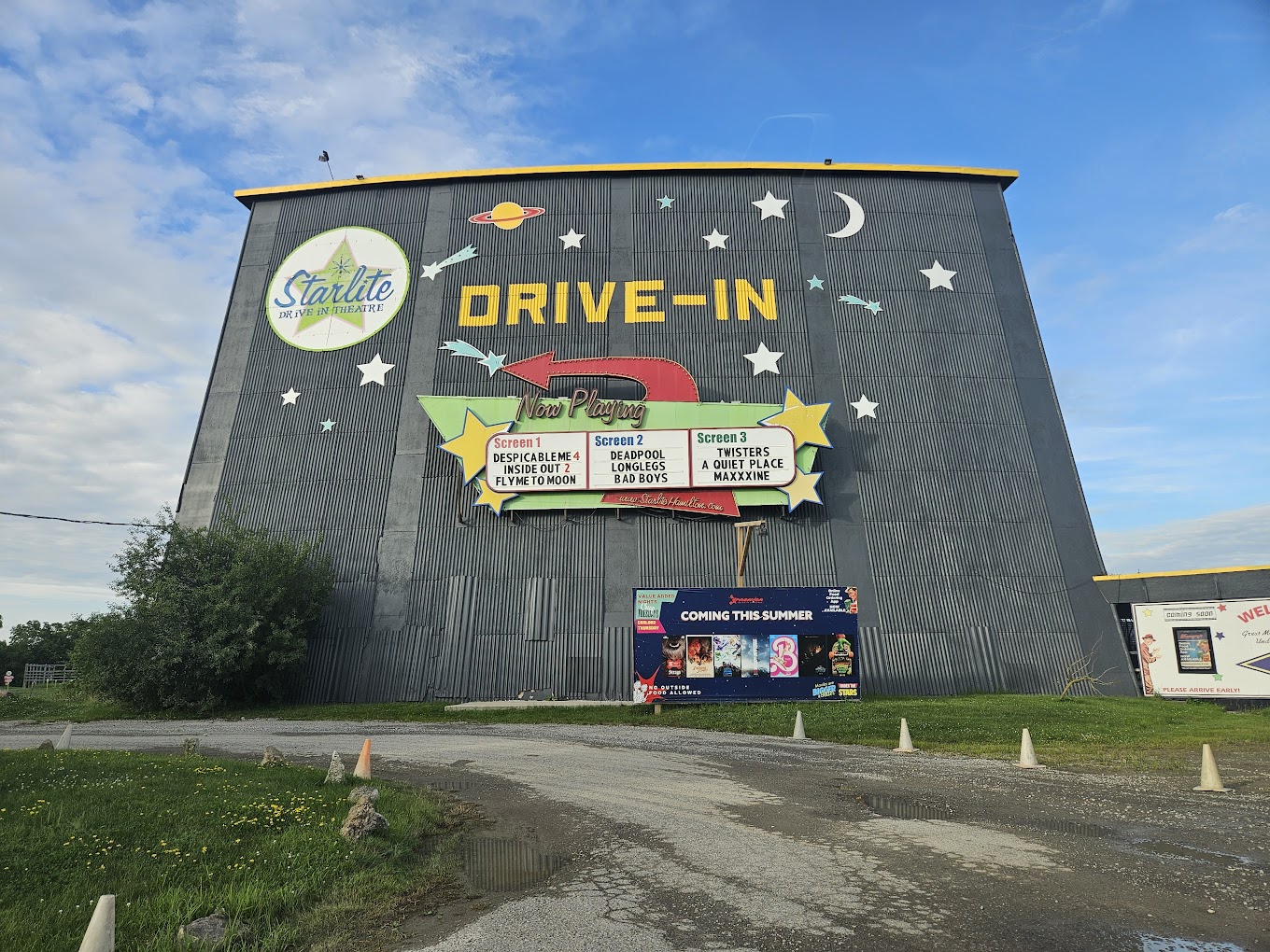 Starlite Drive-In Theatre, located at 59 Green Mountain Road East in Stoney Creek, Ontario, offers a nostalgic and family-friendly outdoor movie experience under the stars. This classic drive-in features multiple screens showcasing a mix of the latest Hollywood blockbusters and beloved classics, providing an ideal setting for a fun night out. Guests can enjoy films from the comfort of their vehicles or set up lawn chairs for an open-air viewing experience. The theatre offers a concession stand with a variety of snacks, including popcorn, candy, and drinks. With its charming retro ambiance and modern projection technology, Starlite Drive-In continues to be a popular destination for movie lovers of all ages.