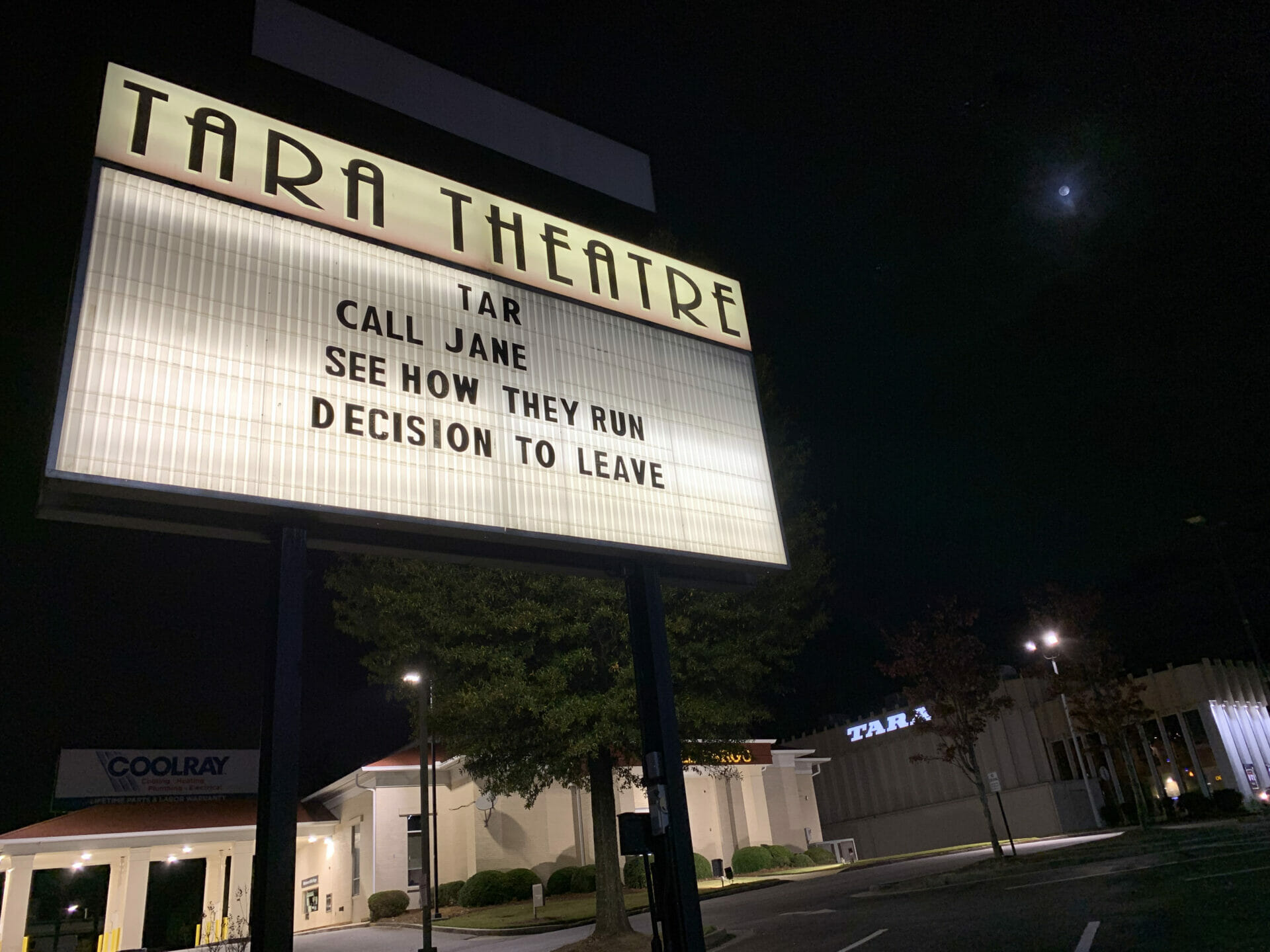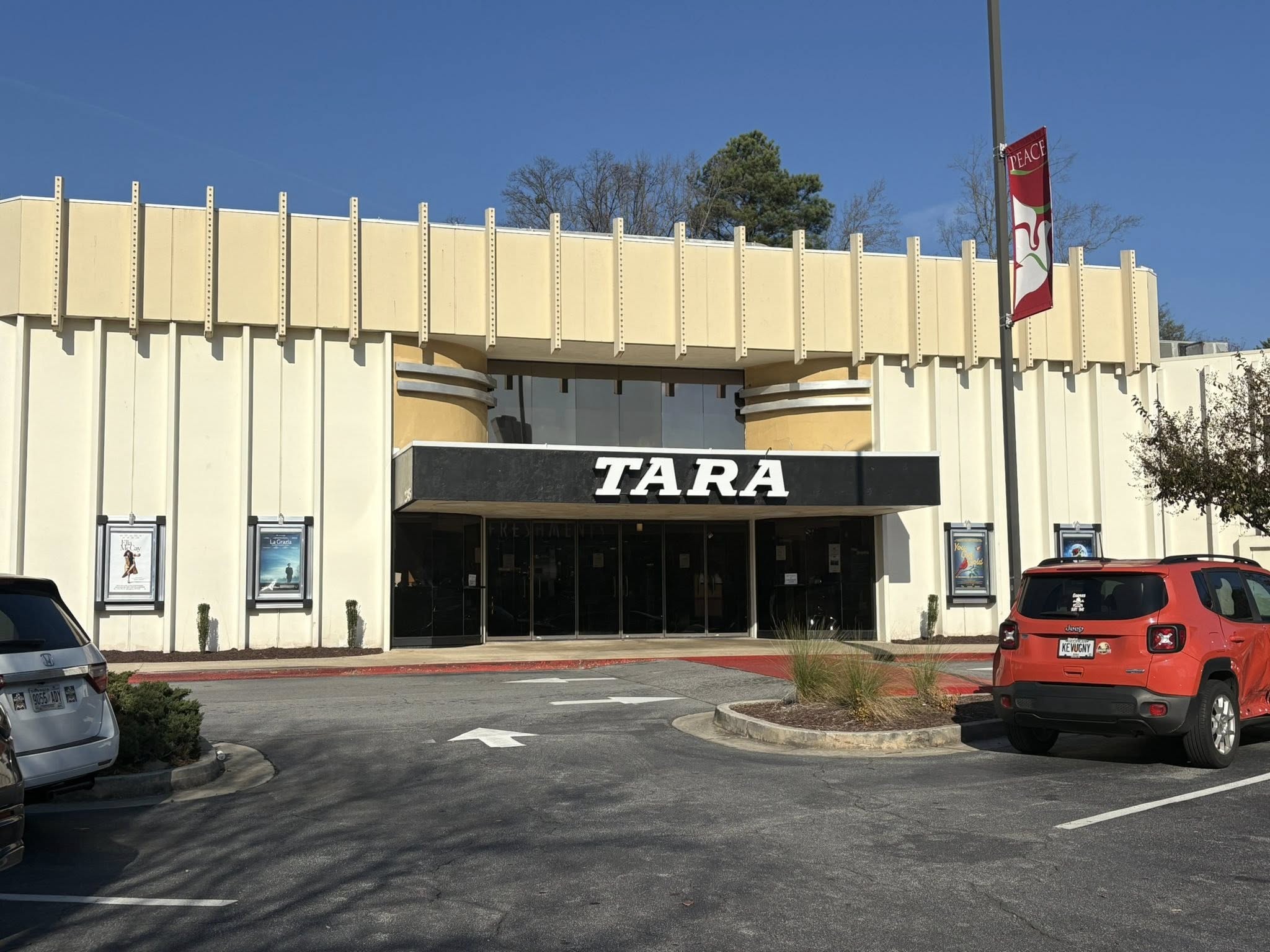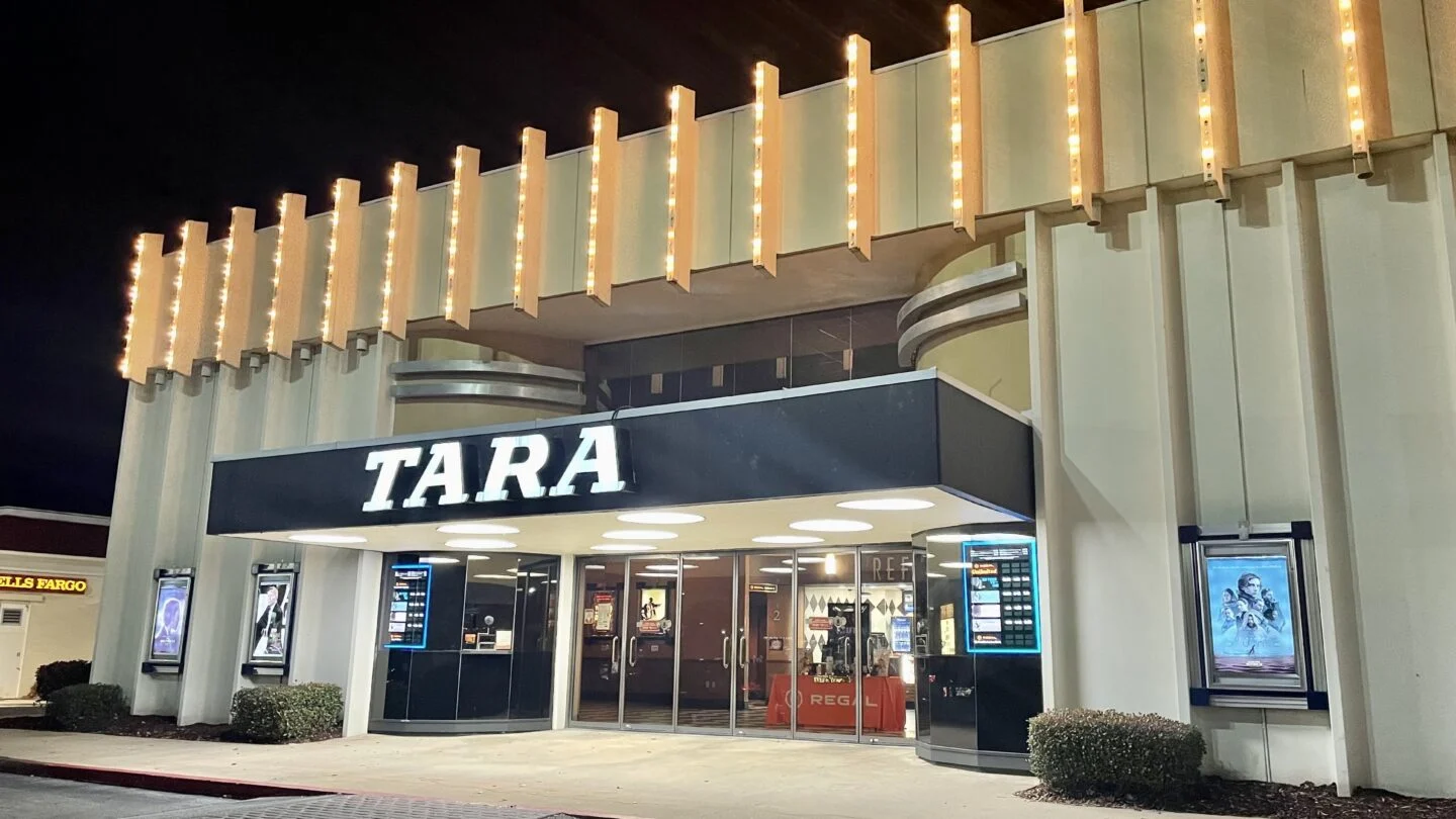 The Tara Theatre is a 4-screen art house movie theater located in Atlanta, Georgia. The theater specializes in presenting independent films, and is the only theater in Atlanta to do so exclusively. The Tara Theatre was opened in June 1968 by Loew’s Theatres. It embodied the modernist architecture popular at the time. The Tara was most recently operated by Regal Cinemas but was closed in November 2022 and then later re-opened in May 2023 under local ownership that also owns the nearby historic Plaza Theatre.