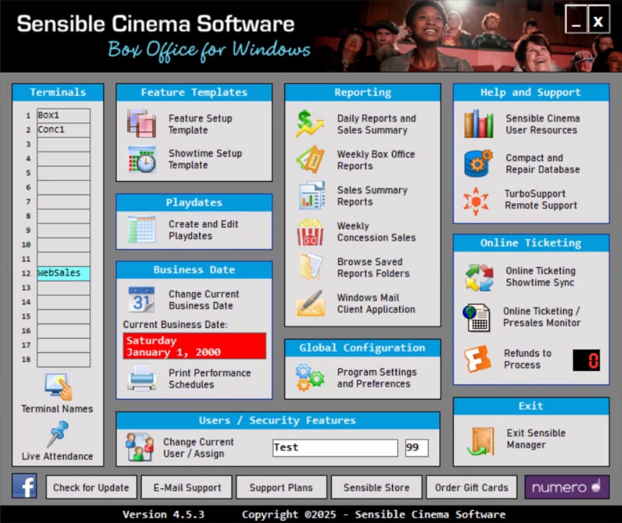 Sensible Cinema Software specializes in Windows-based point-of-sale ticketing and concession systems.