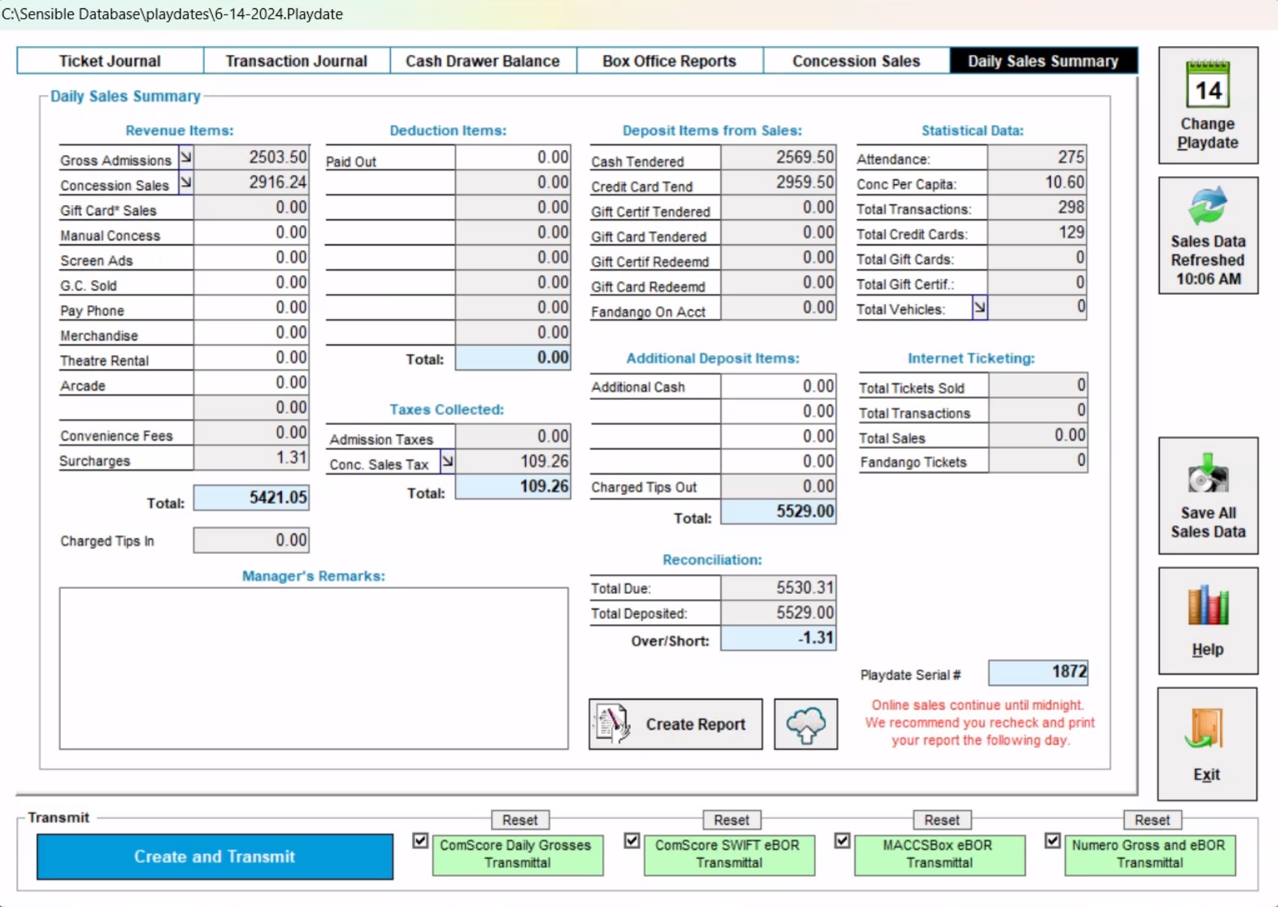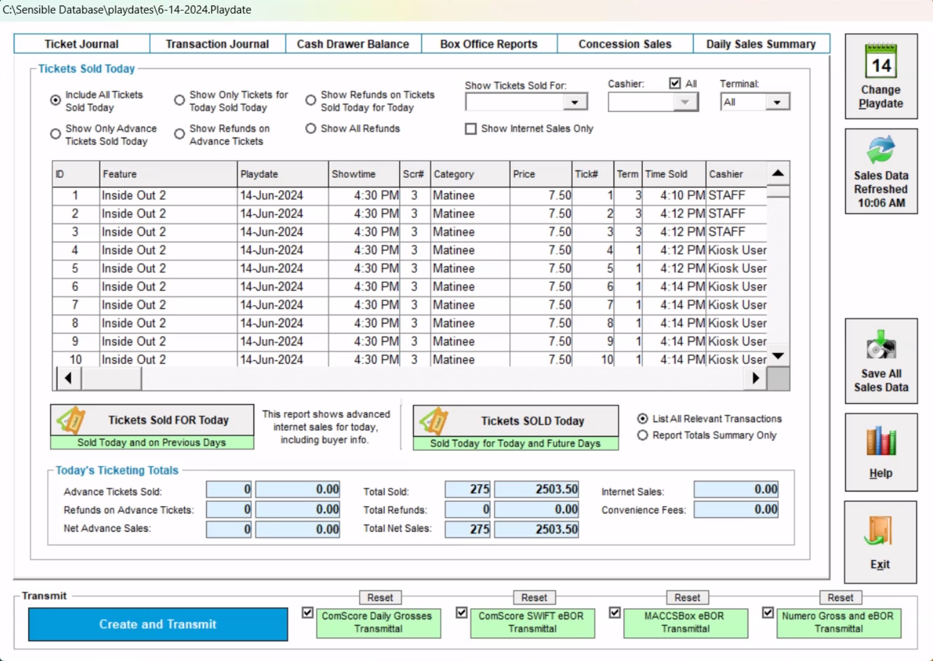 Software for point-of-sale ticketing, concessions, online ticketing, credit card processing and theater management.